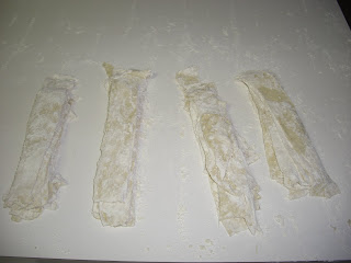 3) Cut strips about 1 1/2 inches x 6 inches.